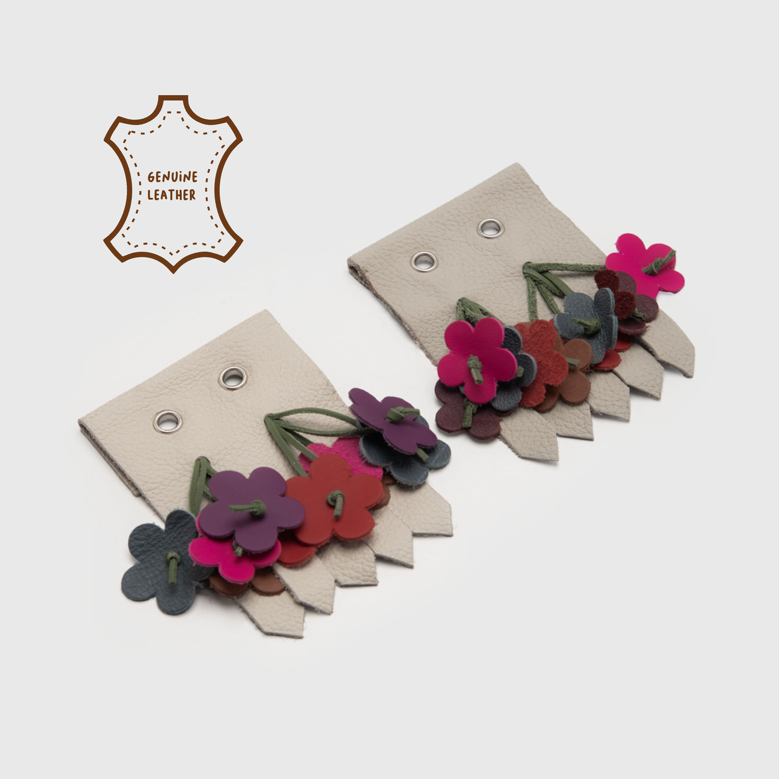 This shoe charm is crafted from genuine leather, delicately shaped into a Fringe design, all made by hand.