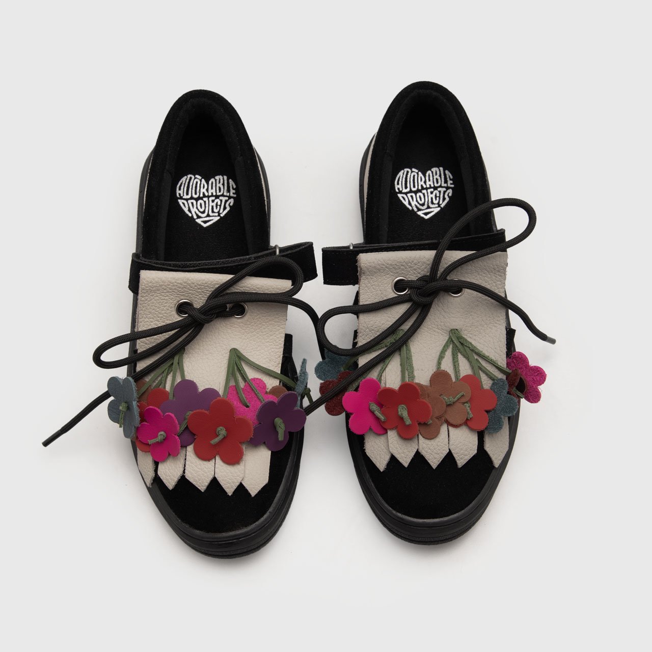 Each piece is carefully cut and assembled, creating a unique accessory to adorn your shoes. Its playful contrast of colors with a simple strap makes it easy to attach, adding a touch of elegance with a hint of whimsy.