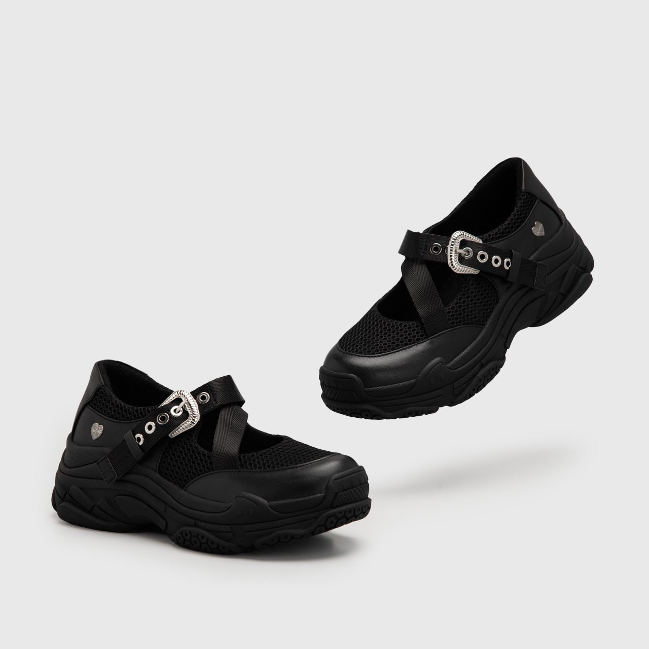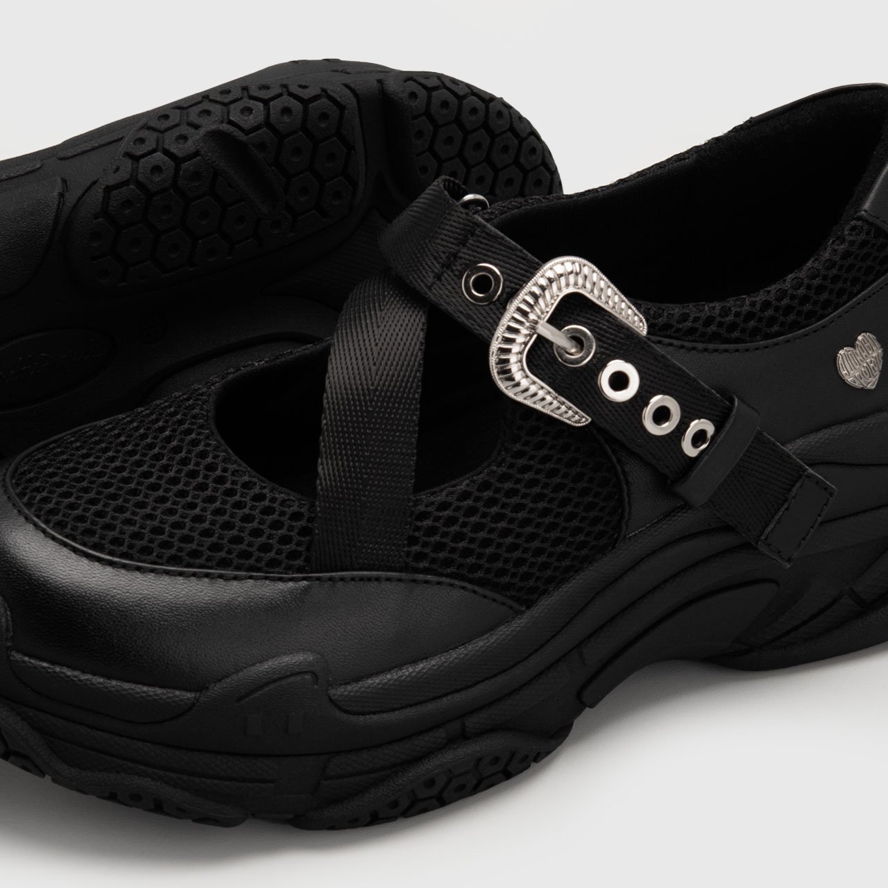 The statement metal buckle detail adds an industrial edge, both functional and decorative elevating the silhouette beyond the ordinary. Paired with a supportive sole and balanced construction, this design delivers stability and comfort without compromising style.