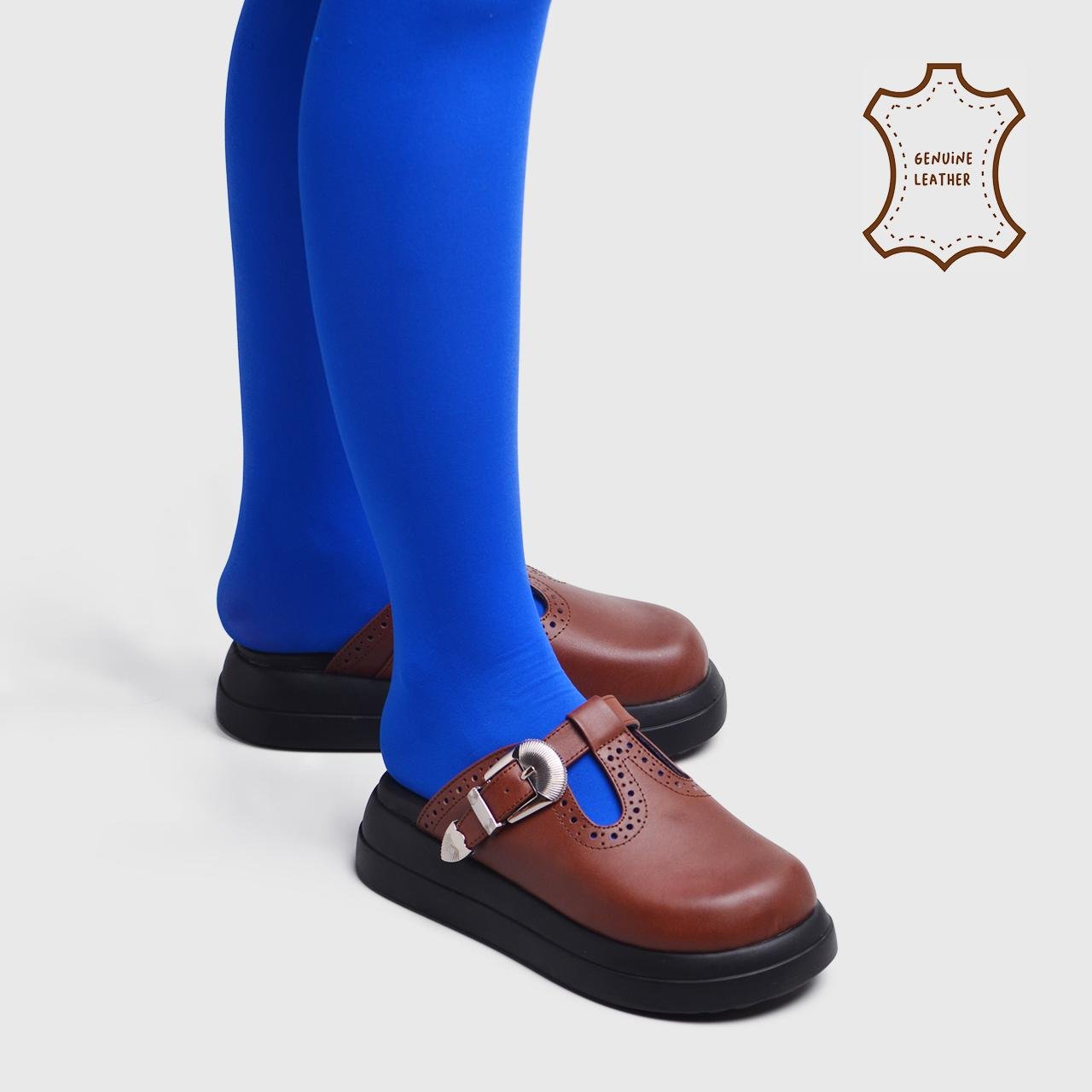 The combination of the low-height platform, Genuine leather upper, and metal embellishments makes Aitra versatile for various outfits. They can be paired with dresses, skirts, pants, or shorts, adding a stylish flair to any look.