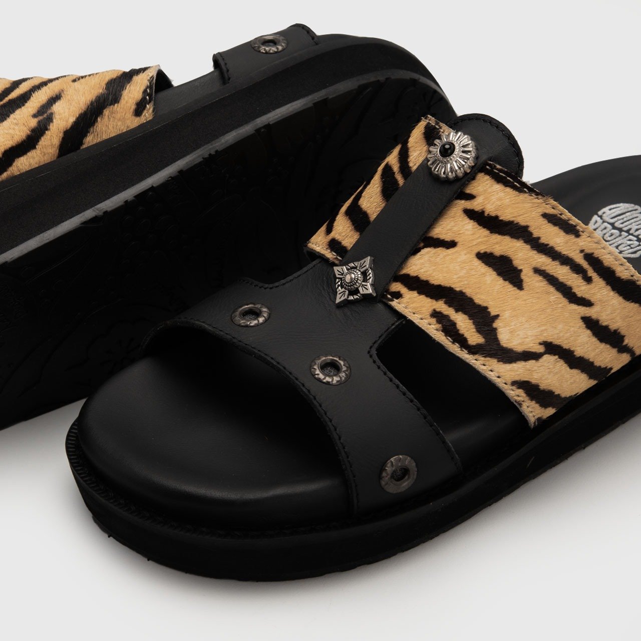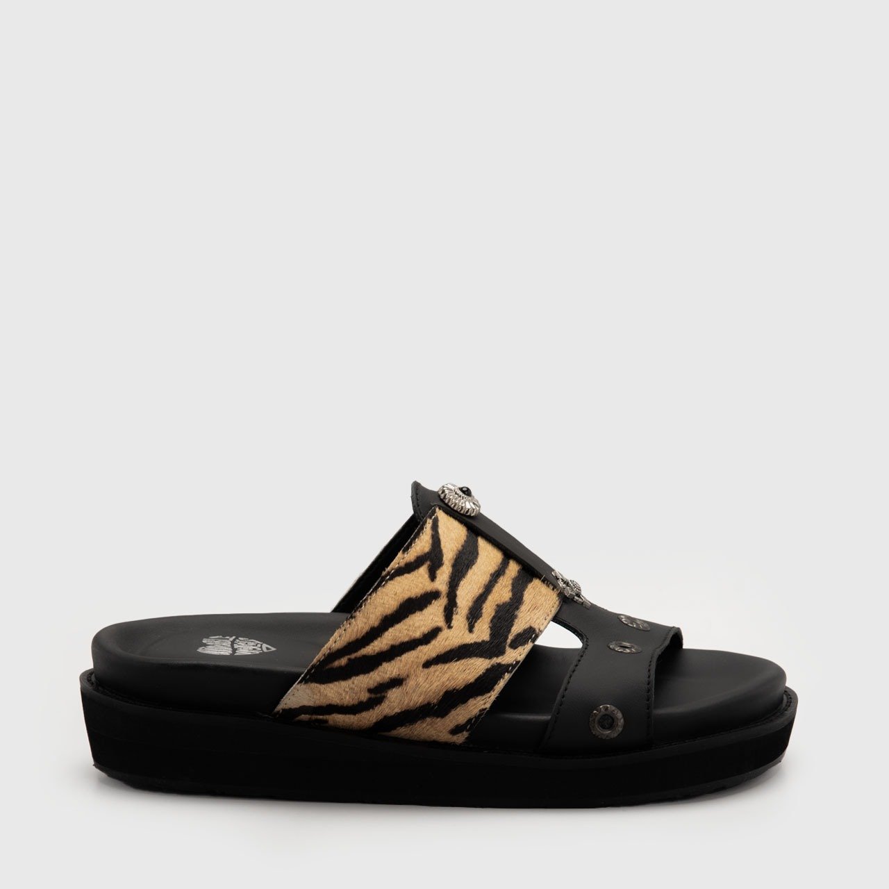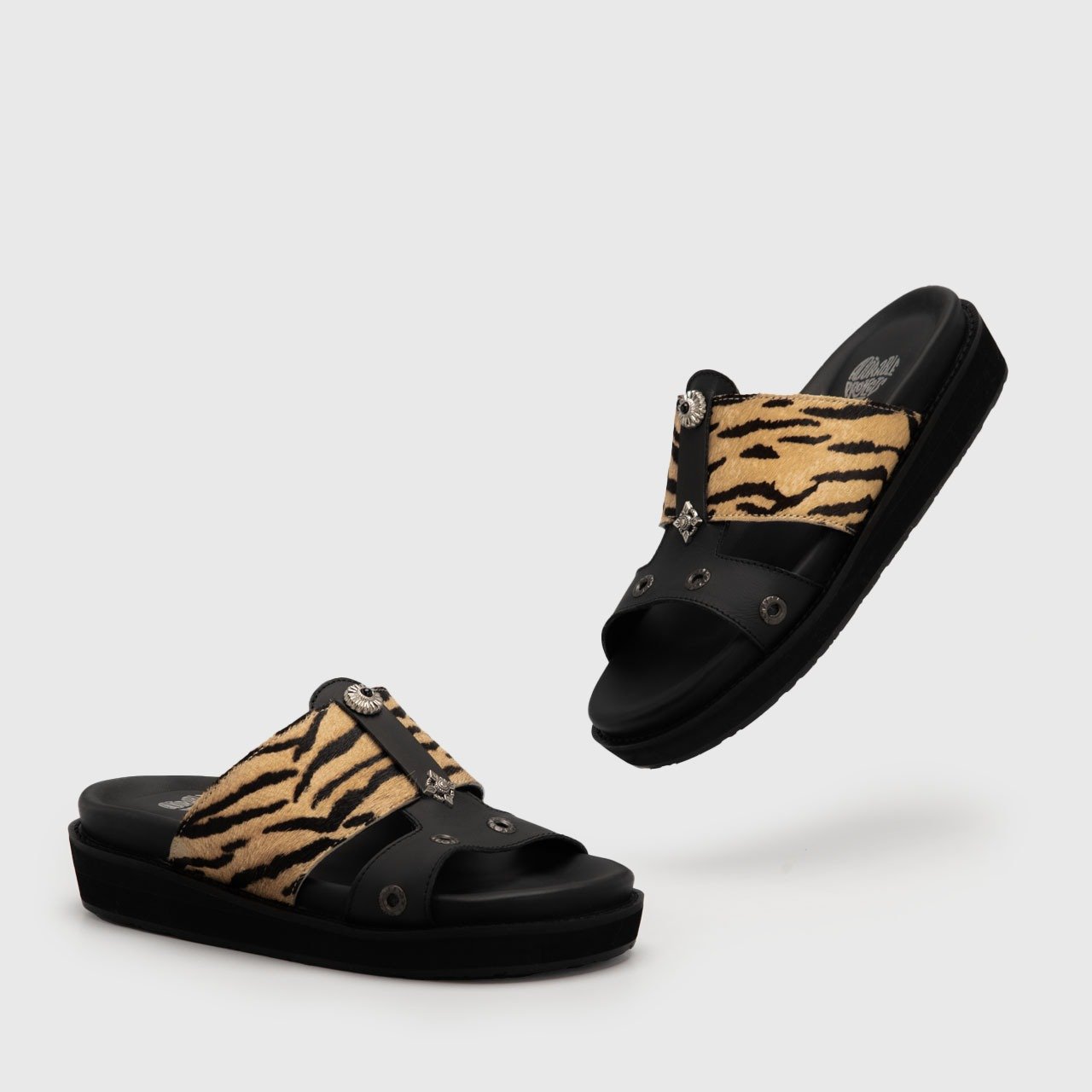 The Avianna Leather Sandals capture the bold spirit of the wild, refined through the lens of modern luxury. Crafted from genuine leather and accented with a striking animal-patterned panel, each pair embodies confidence fierce yet beautifully composed.