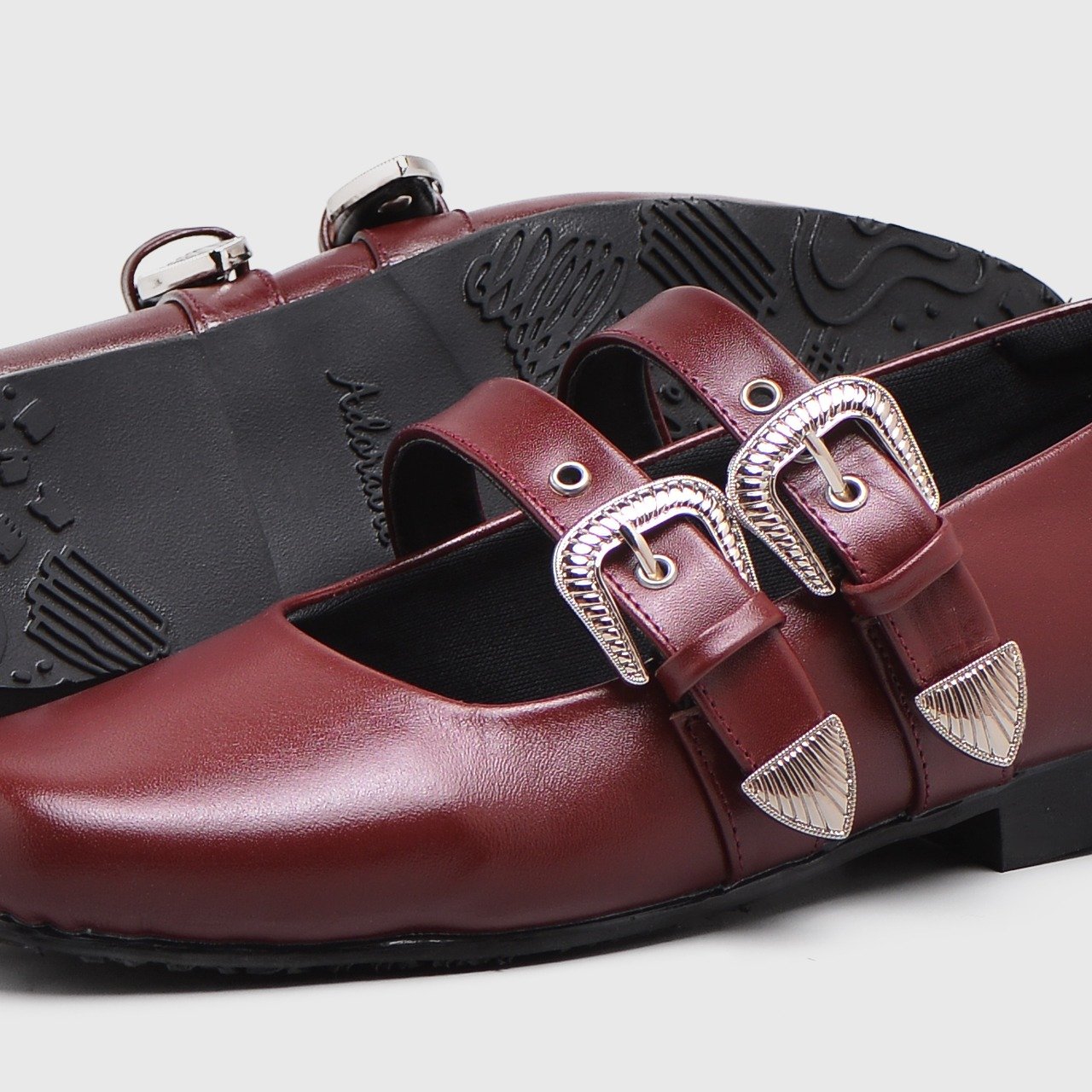 Baleva Flat Shoes Genuine Leather Maroon - Image 2