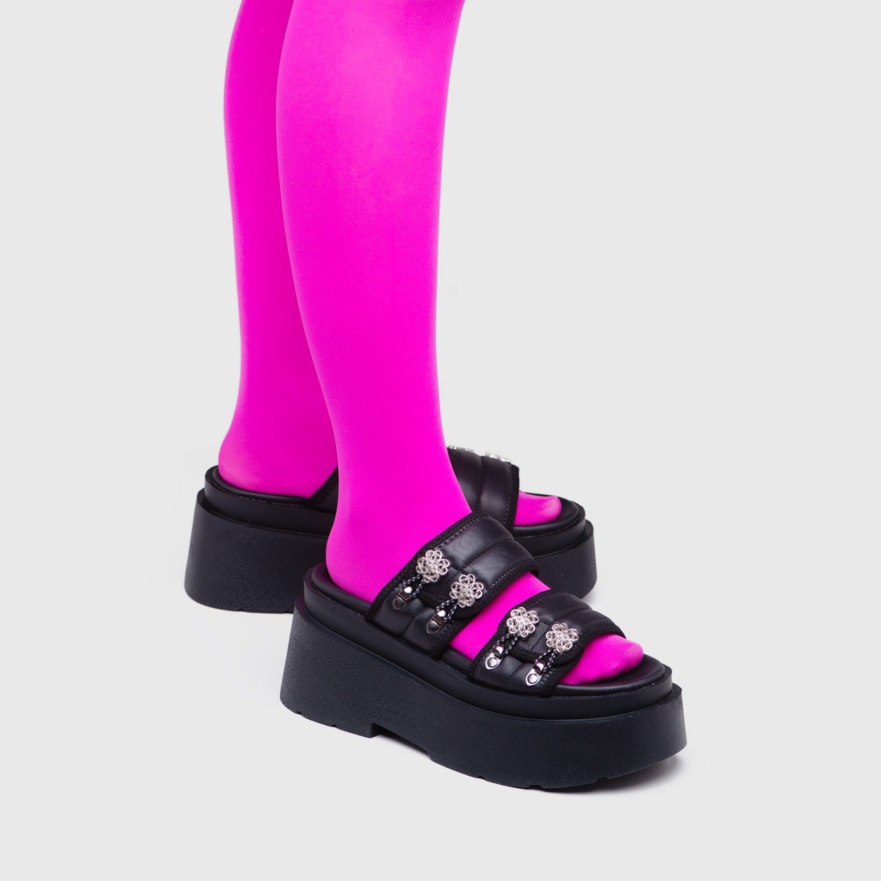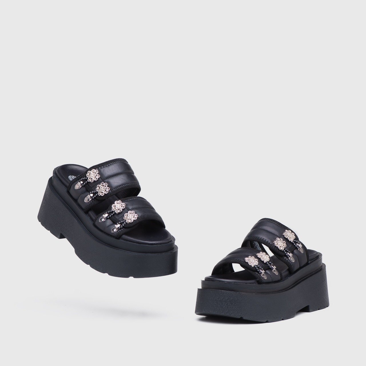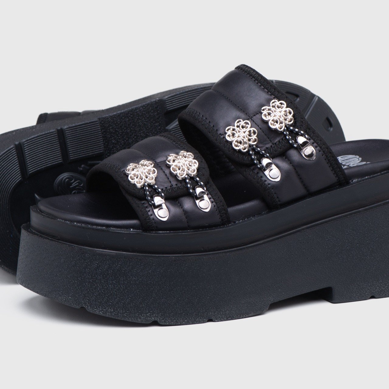 These metal embellishments may come in various forms, such as studs, buckles, or decorative patterns. They serve as eye-catching details that enhance the overall aesthetics of the sandals.