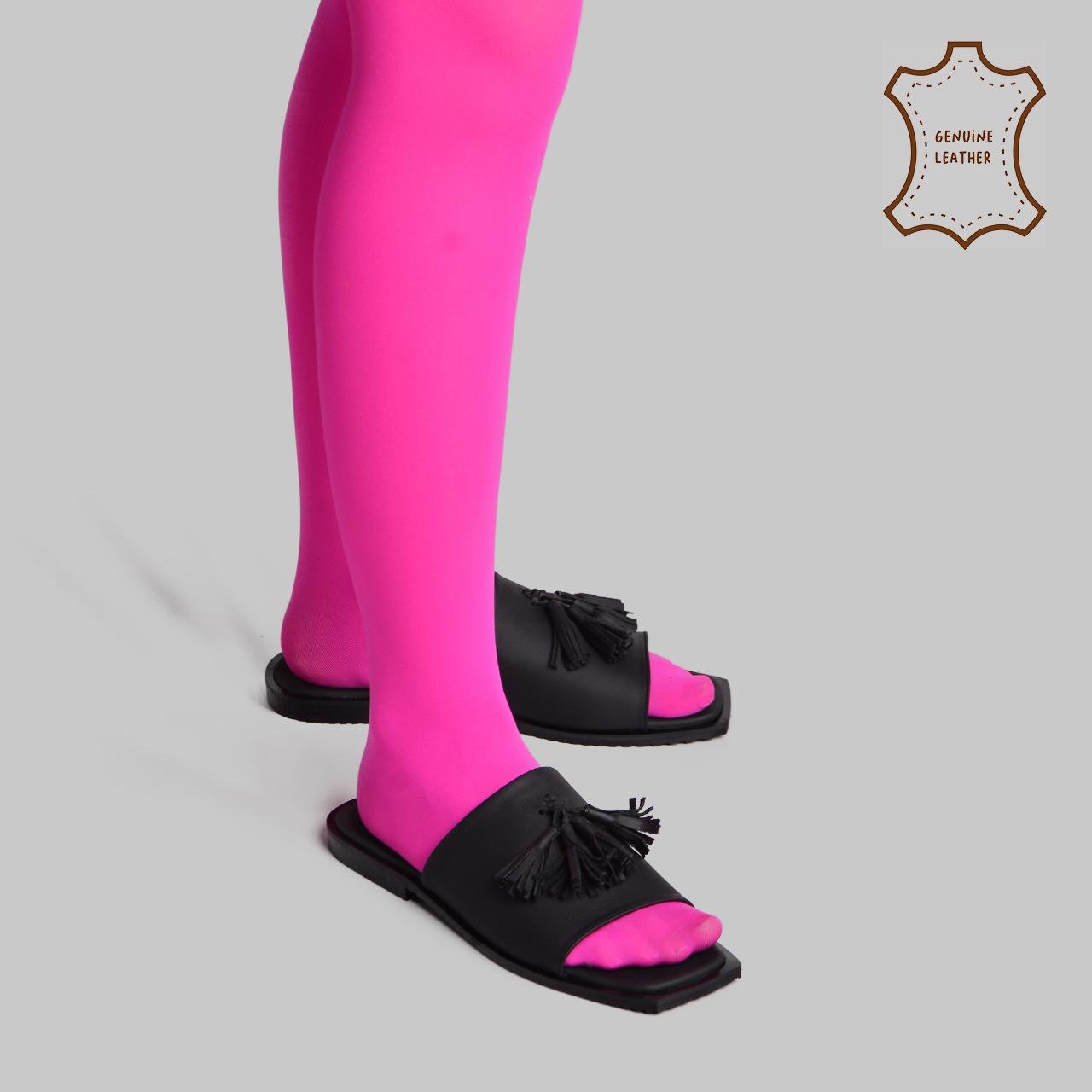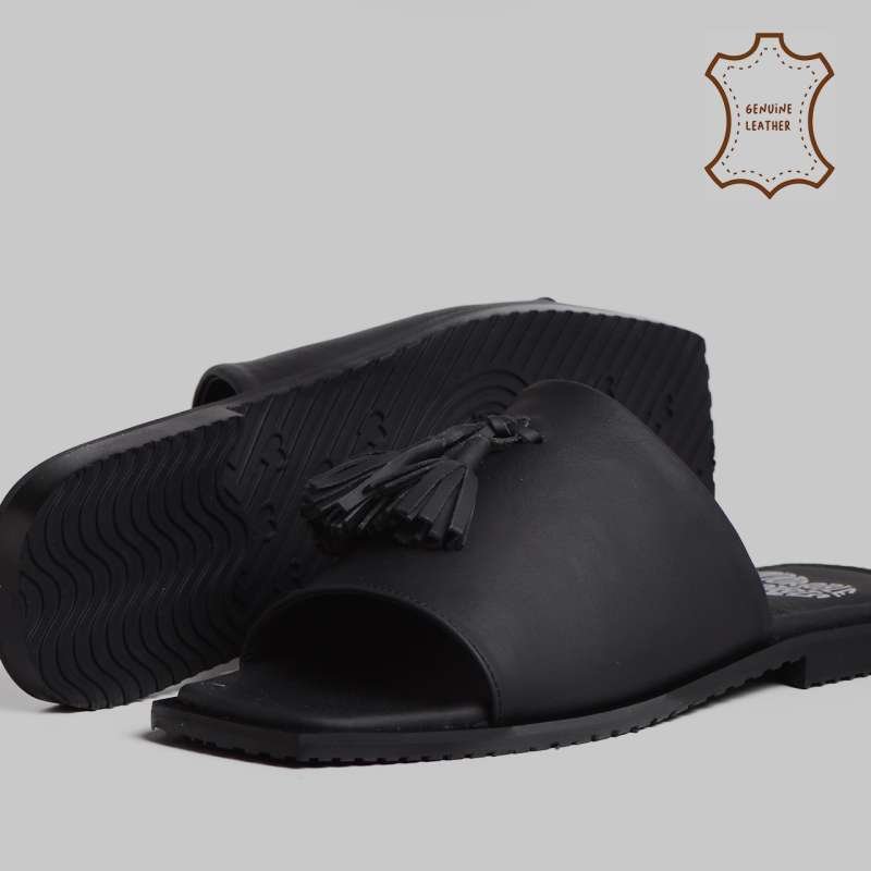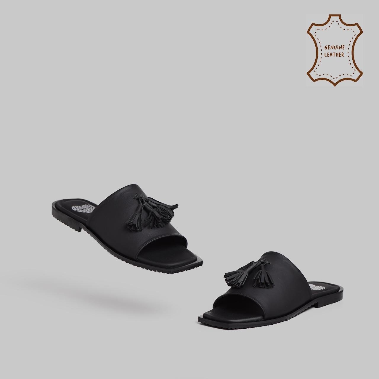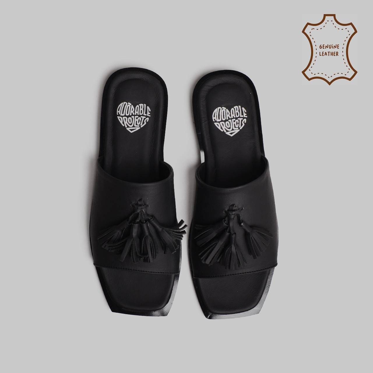 Made from high-quality genuine leather, it features clean, structured straps for a secure fit and long-lasting comfort. A standout tassel embellishment adds a touch of playful elegance, bringing character to the minimalist silhouette.