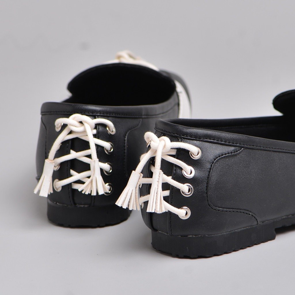 A standout detail is the shoelace embellishment, adding a playful and stylish touch to the classic ballet flat silhouette. This unique feature enhances the overall design, making these flats suitable for both casual and semi-formal occasions.
