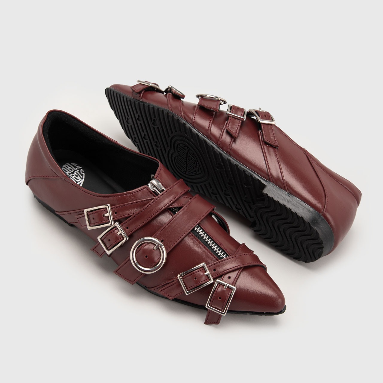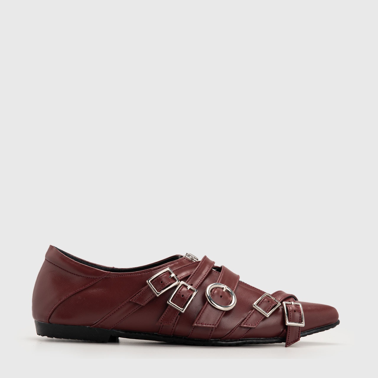 The Difara Leather Flats are crafted for women who embrace sophistication with a touch of rebellion. Made from genuine black leather, its sharp point-toe silhouette creates a refined, elongated look. While the bold arrangement of metal buckles and zippers adds depth, character, and undeniable attitude.
