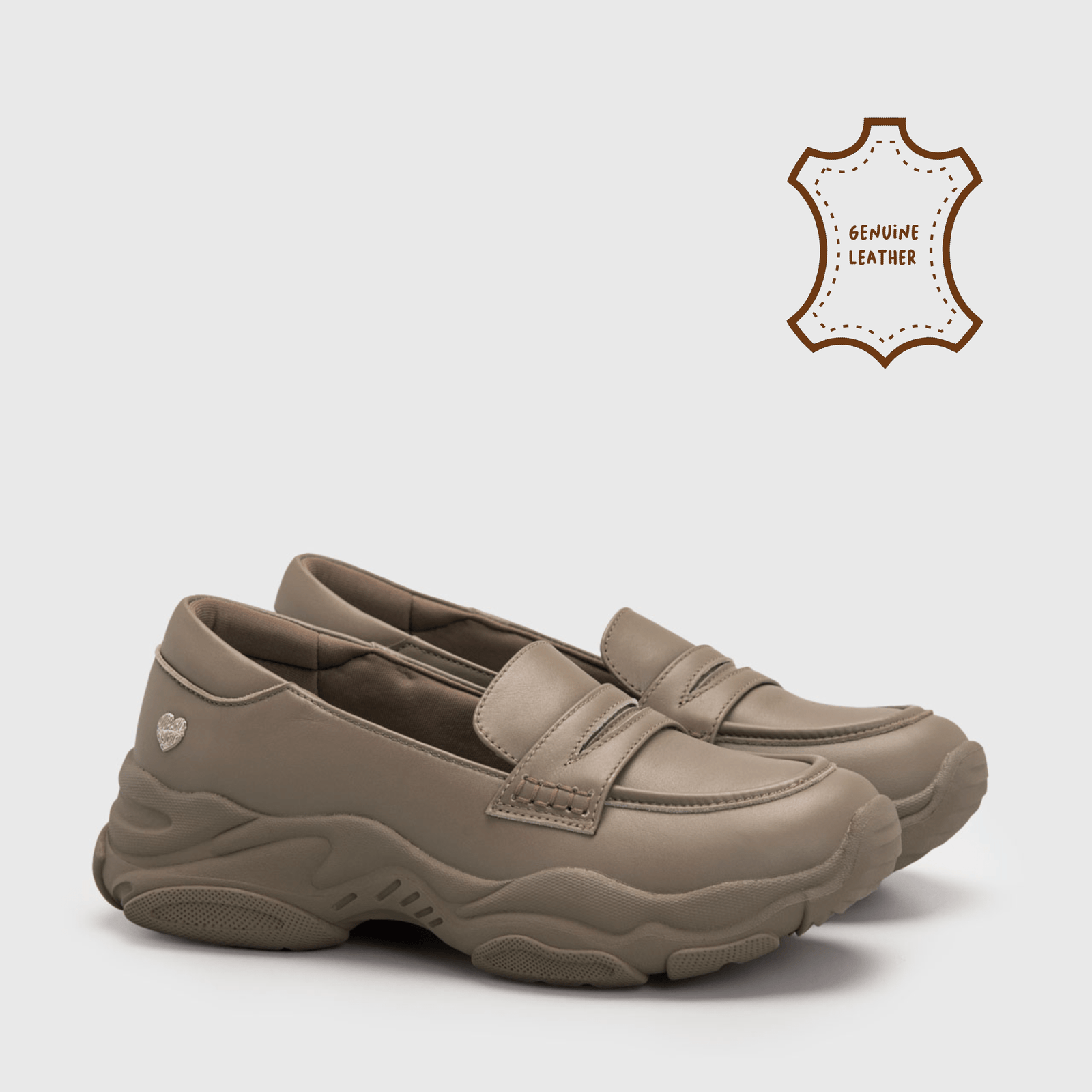 The Dwiny penny loafer with chunky sneaker soles blends classic elegance with a sporty, modern twist. Its genuine leather upper adds a touch of sophistication and durability, while the chunky sneaker-inspired sole offers enhanced comfort and a bold, contemporary look.