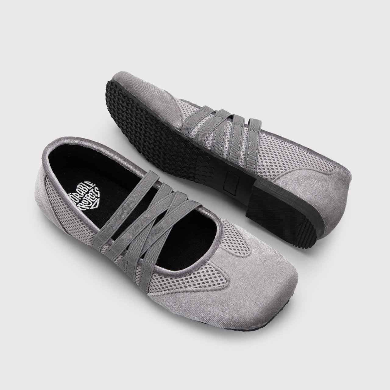 Wrapped in a rich velvet finish and paired with breathable mesh panels, these square-toe flats create a perfect harmony of texture, comfort, and refined style.