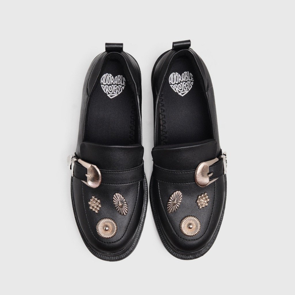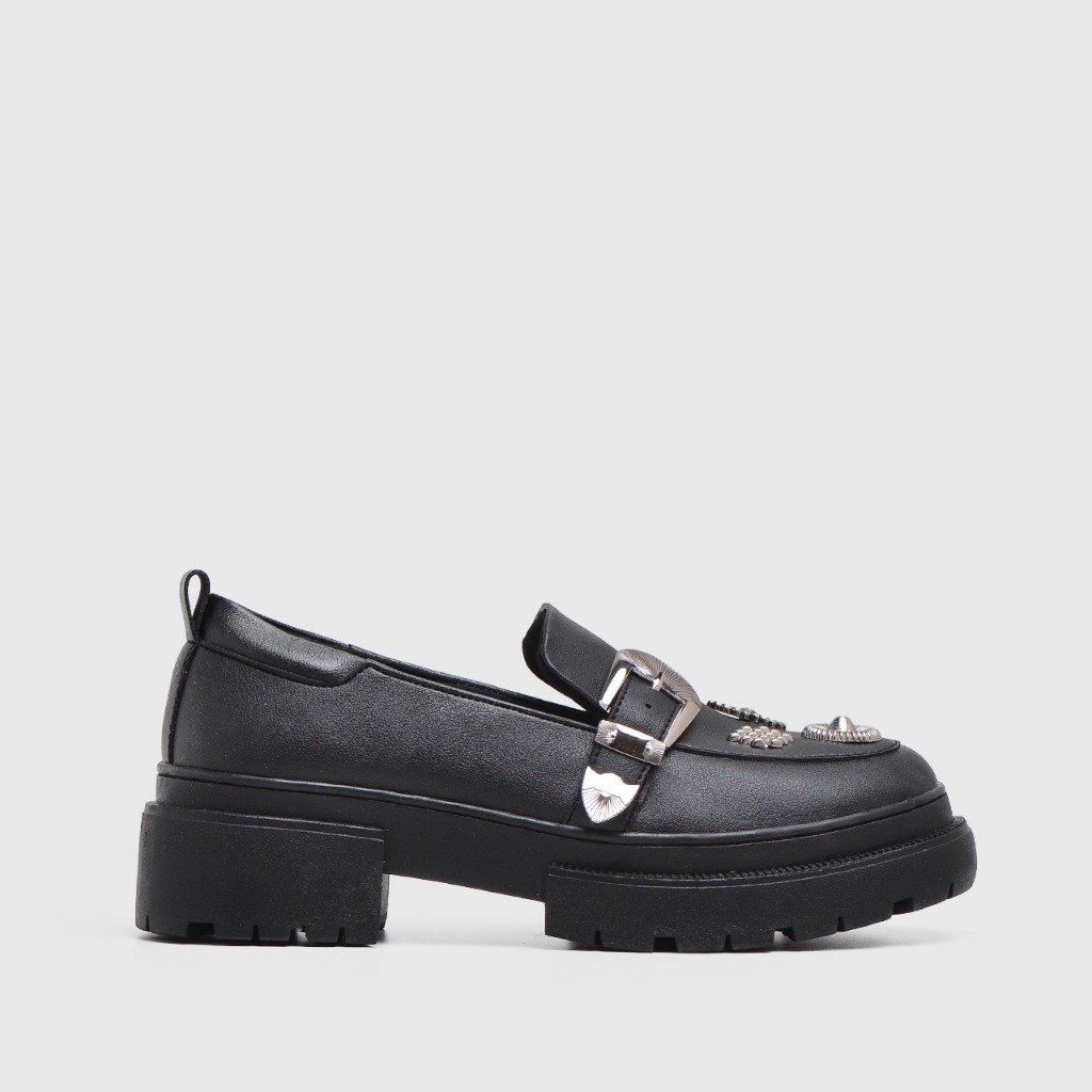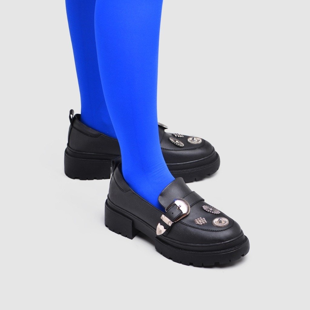 Enyda is a stylish and elegant pair of loafers that offer a blend of classic design and contemporary flair. With their metal buckle, metal embellishment detailing, and comfortable