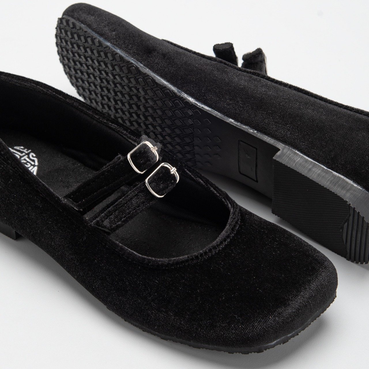 Velvet Square-Toe Mary Jane Flats — Soft Elegance, Effortlessly Defined.