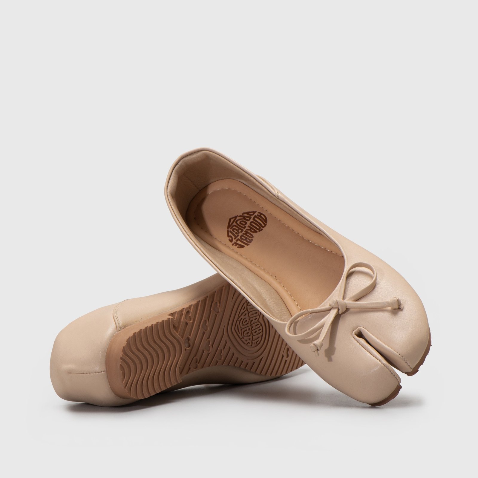 Evodia is a type of flat tabi shoe. Tabi shoes are traditional Japanese footwear that have a split-toe design, with a separate section for the big toe and the rest of the toes. This design is said to improve balance and flexibility, and is commonly worn in Japan for both casual and formal occasions.