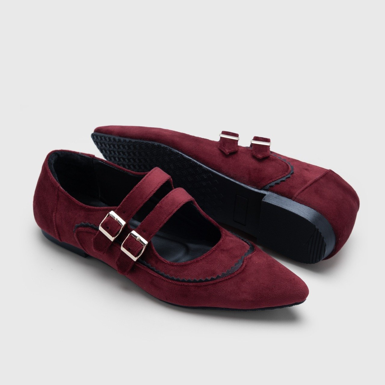 Glovela is a classic Mary Jane flat shoe reimagined with a refined, pointed-toe silhouette and luxurious velvet finish.