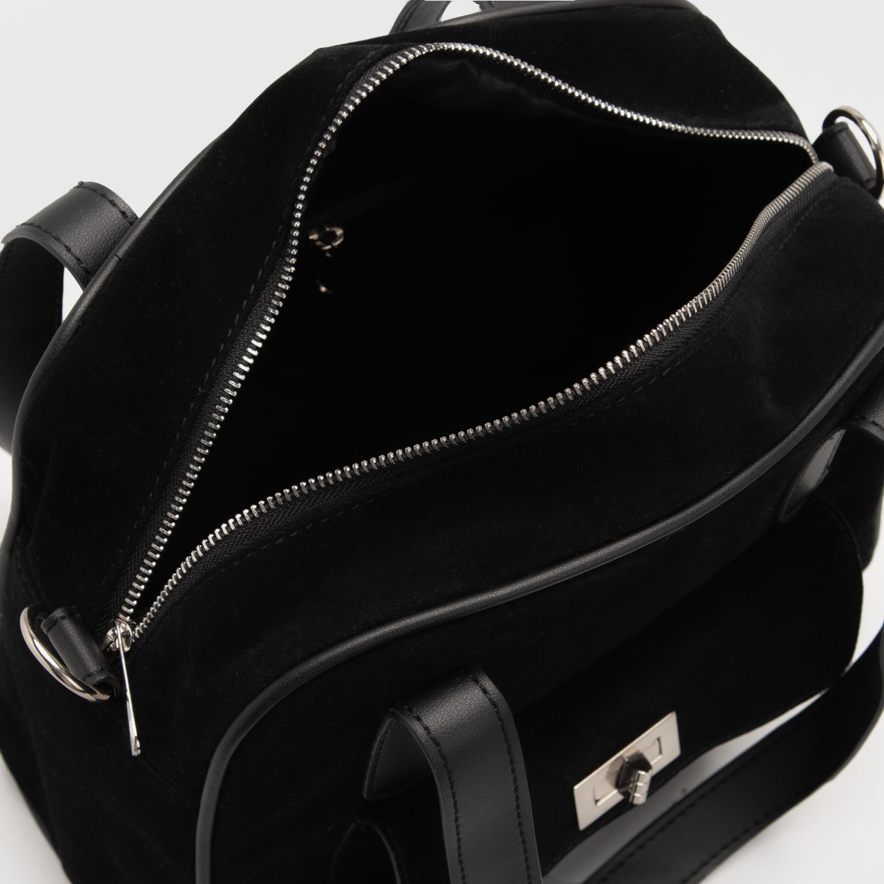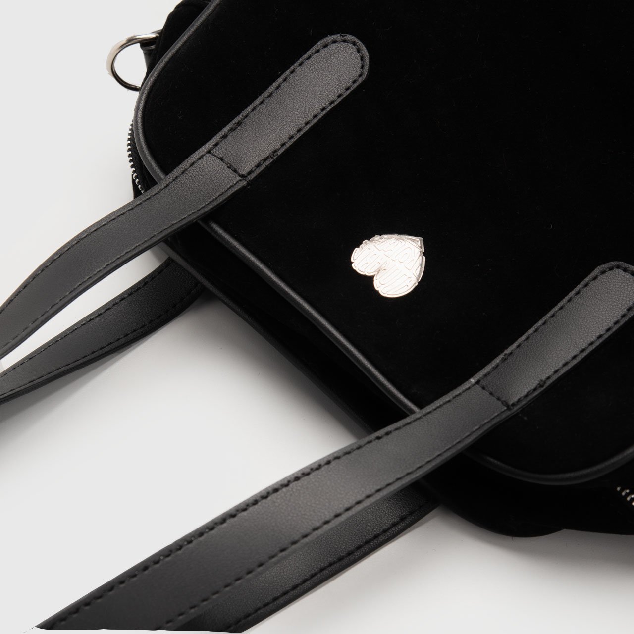 The Guena Suede Tote blends the gentle allure of velvety vegan suede with the sleek structure of smooth vegan leather, creating a silhouette that feels timeless yet effortlessly modern. Wrapped in deep black, it becomes a quiet statement — subtle, refined, and endlessly versatile.