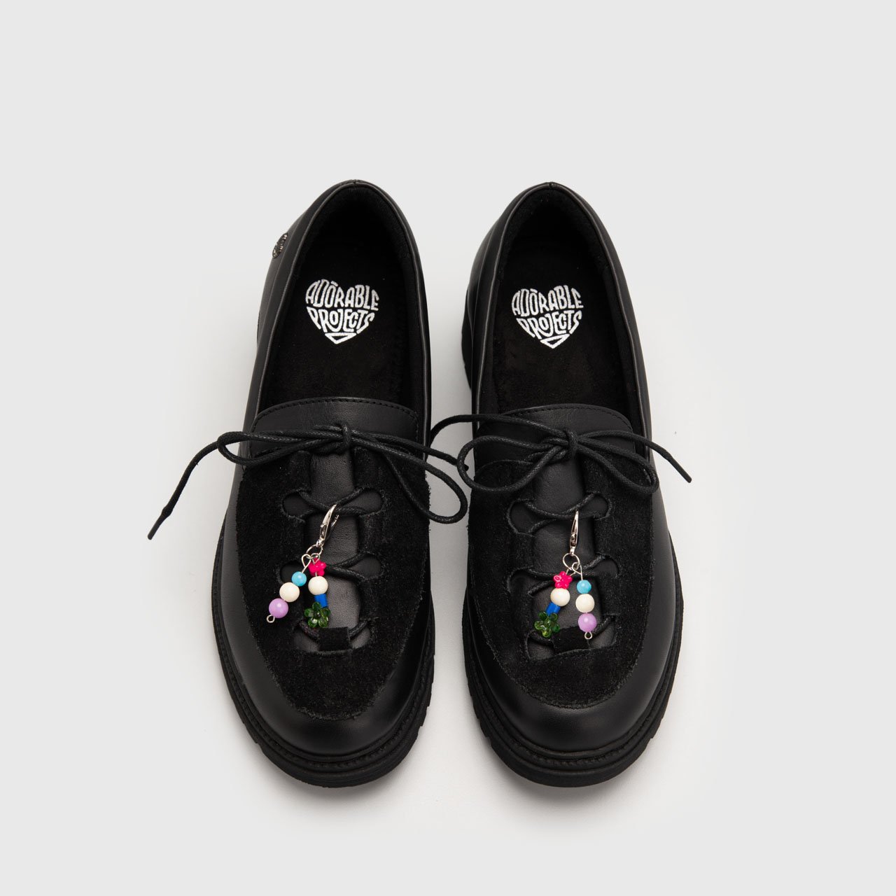 Each piece is carefully cut and assembled, creating a unique accessory to adorn your shoes. Its playful contrast of colors with a simple strap makes it easy to attach, adding a touch of elegance with a hint of whimsy.