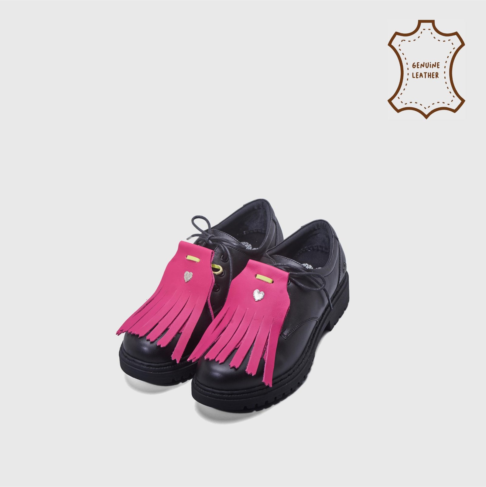 Each piece is carefully cut and assembled, creating a unique accessory to adorn your shoes. Its playful contrast of colors with a simple strap makes it easy to attach, adding a touch of elegance with a hint of whimsy.