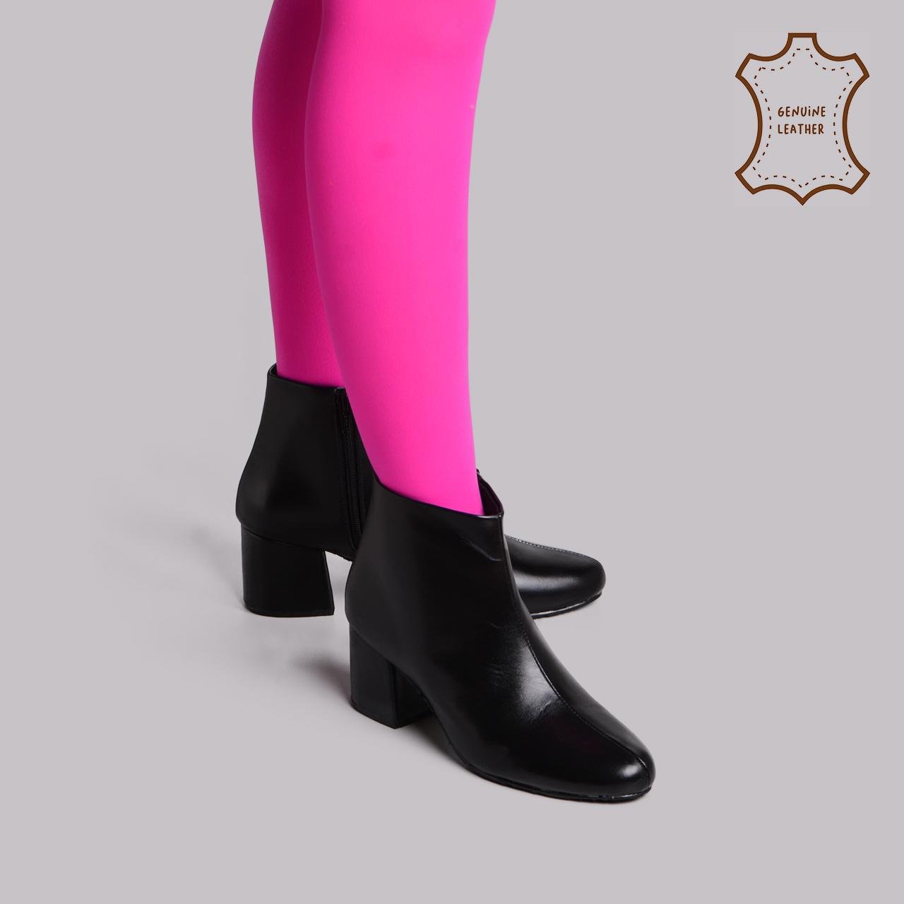 Lasya Ankle Boots with Medium Chunky Heels in Genuine Leather.