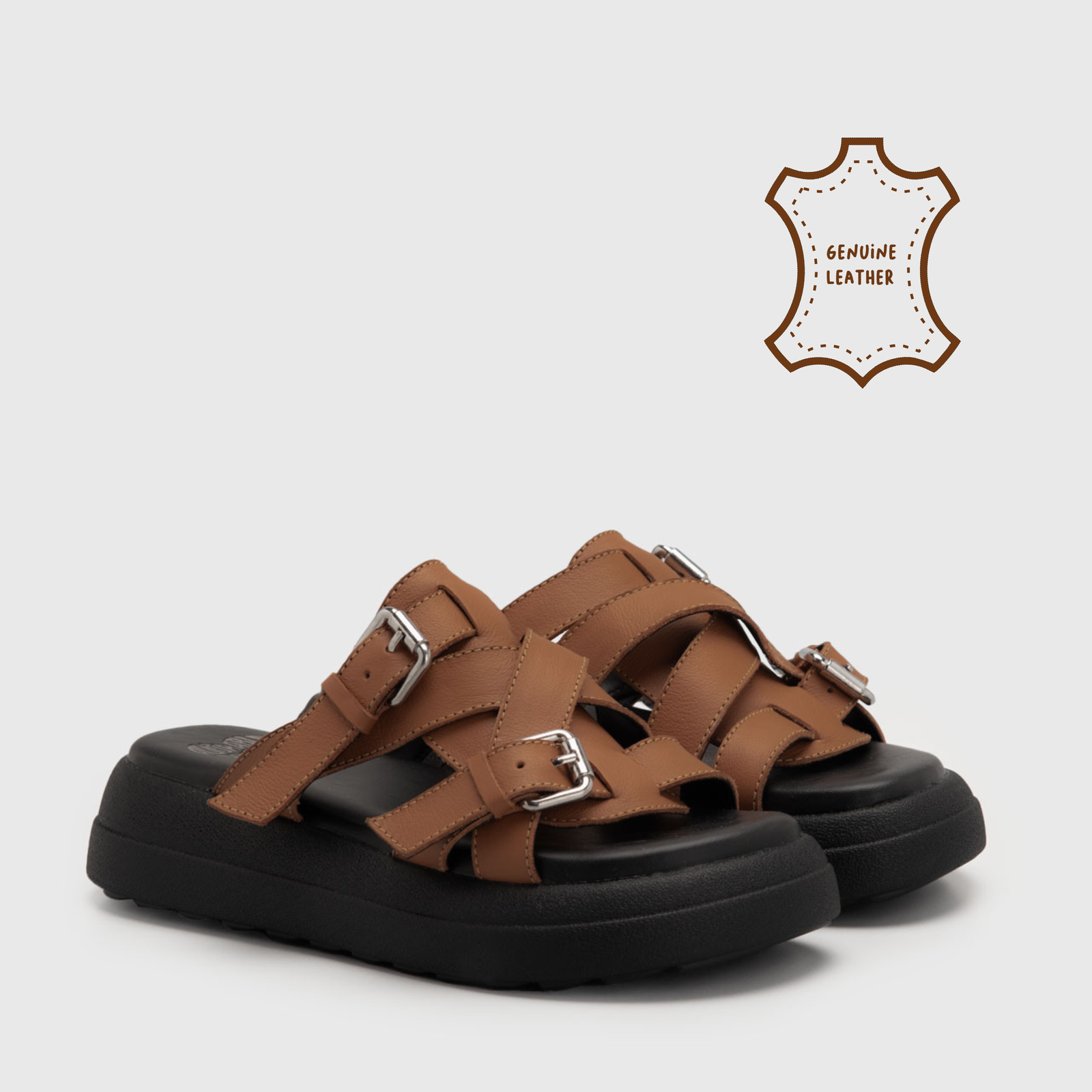 Lyanno Sandals Genuine Leather Tan - Image 3