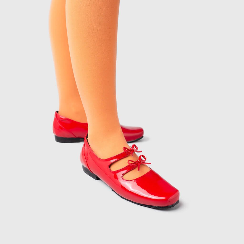 Madison is a stylish pair of square toe flat shoes that exude sophistication and elegance. Crafted from artificial leather, these flats feature a unique double strap design with ribbon embellishments, adding a touch of charm and femininity to your ensemble.