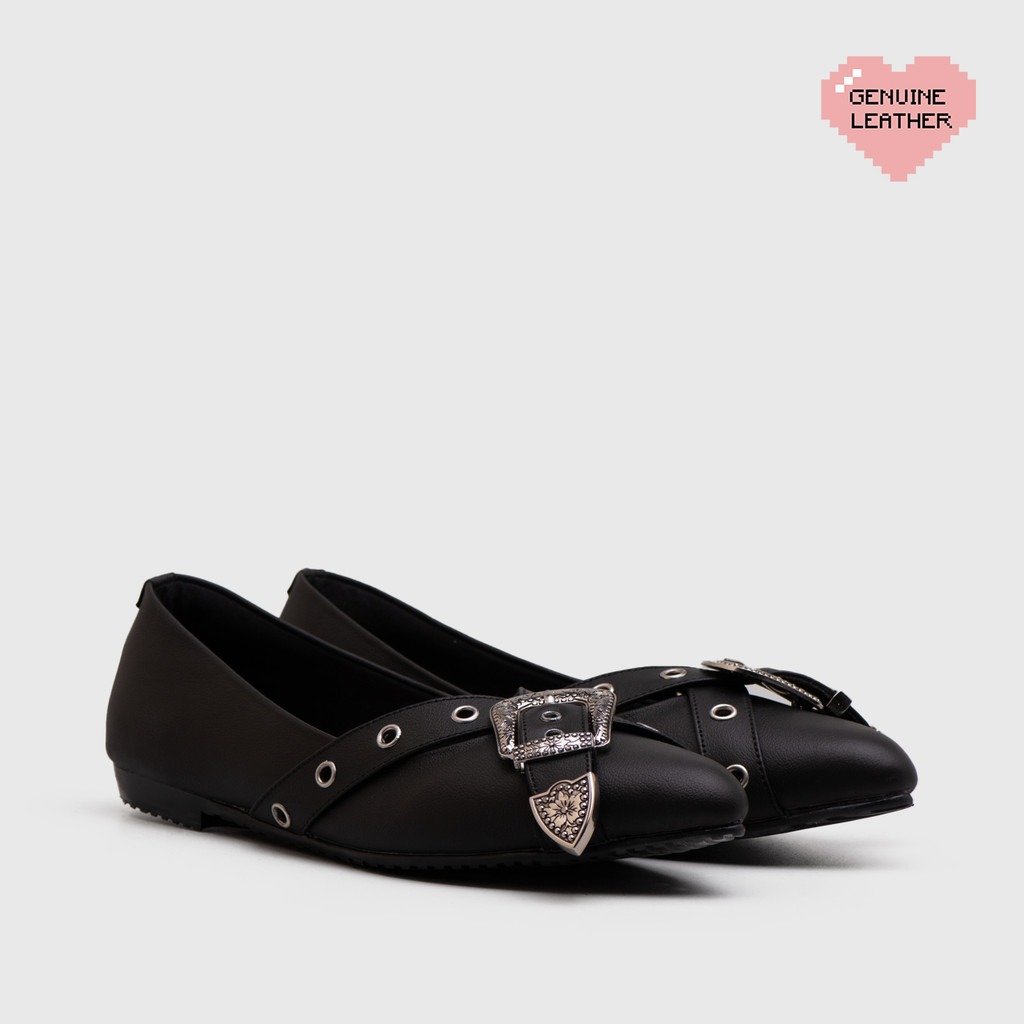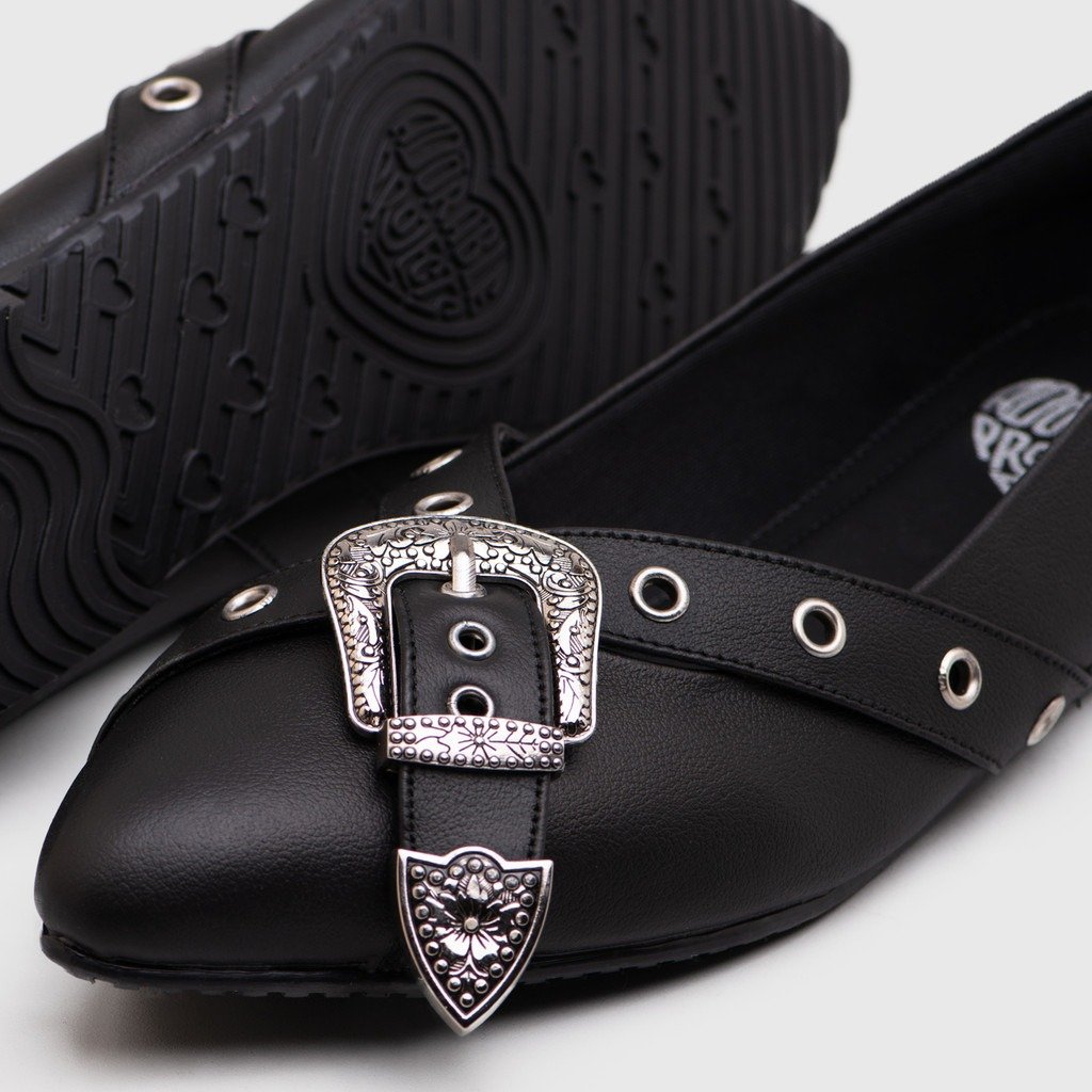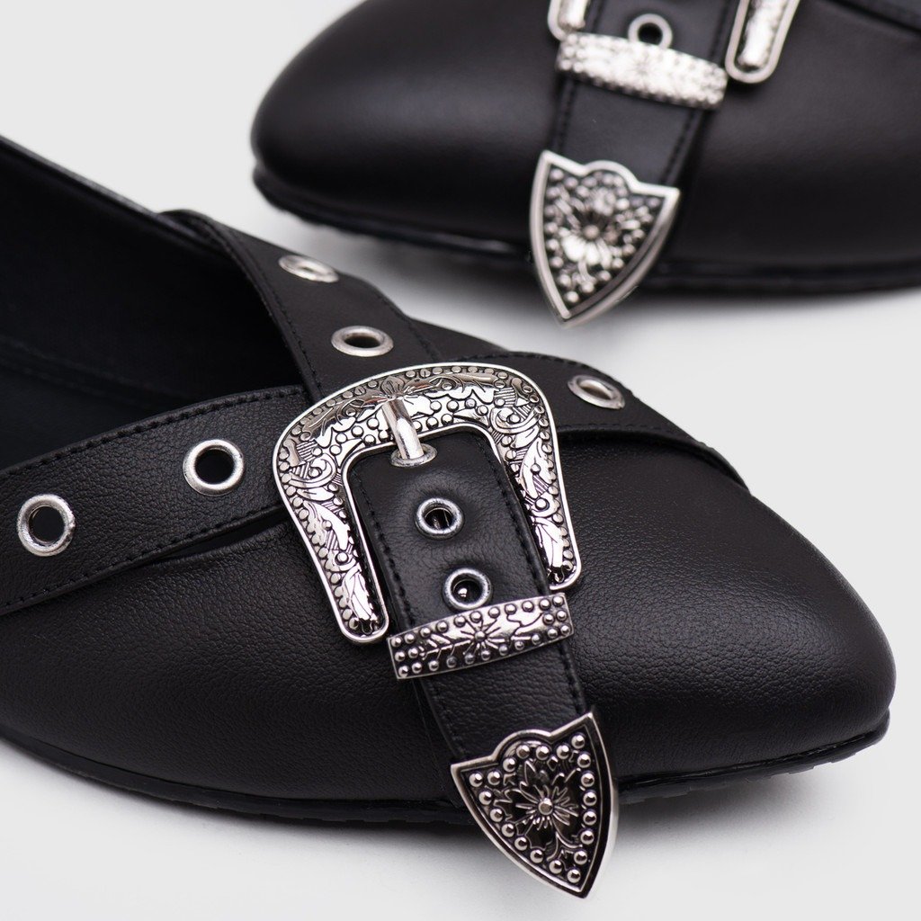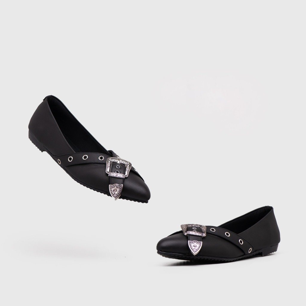 Mufla is a stylish and practical flat shoe that features low heels and metal buckle embellishments. The shoes are designed to be comfortable and versatile, making them ideal for daily wear and routine activities.