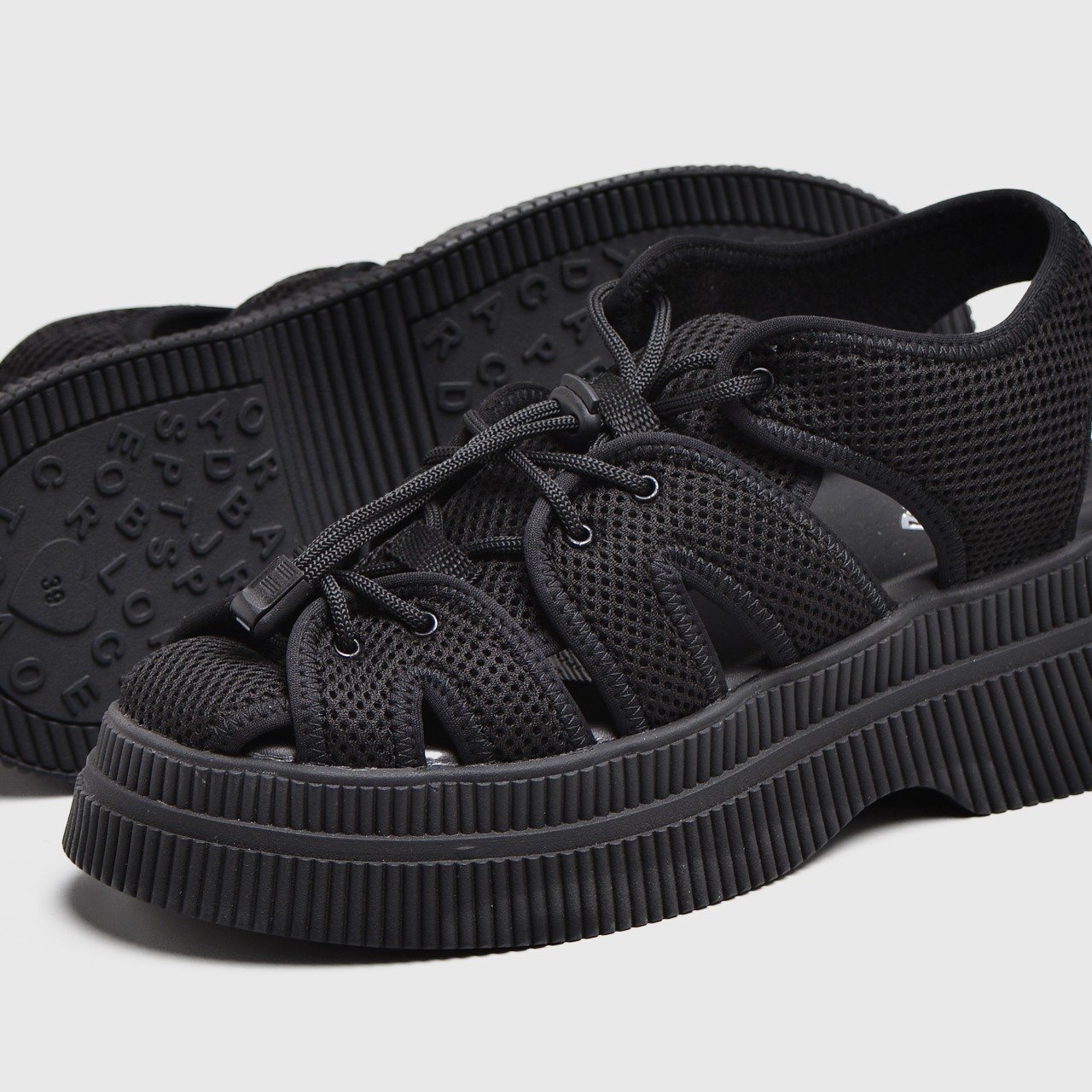 The upper is made from mesh fabric, giving the sandals a breathable and lightweight feel, perfect for warmer weather. The mesh design adds a sporty, contemporary aesthetic, making these sandals versatile for casual and streetwear-inspired outfits.