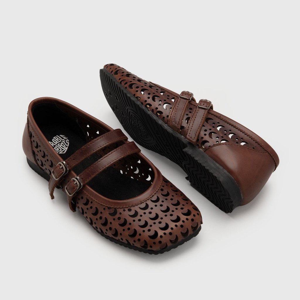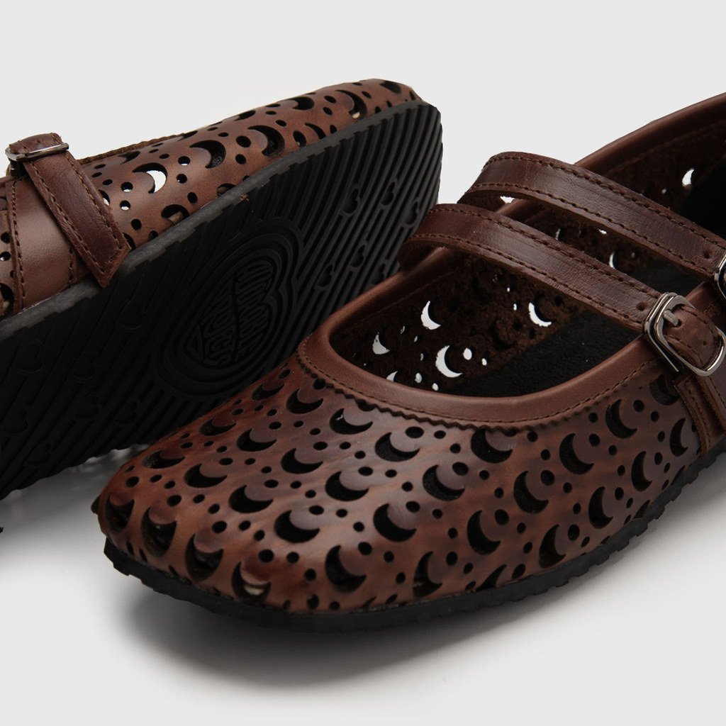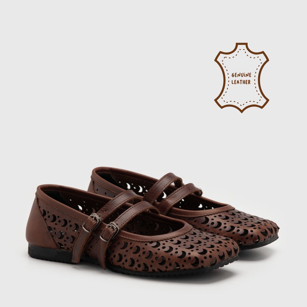 Adorable Projects – Naureen Laser Cut Flat Shoes Genuine Leather Brown
