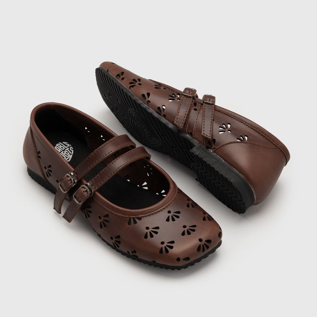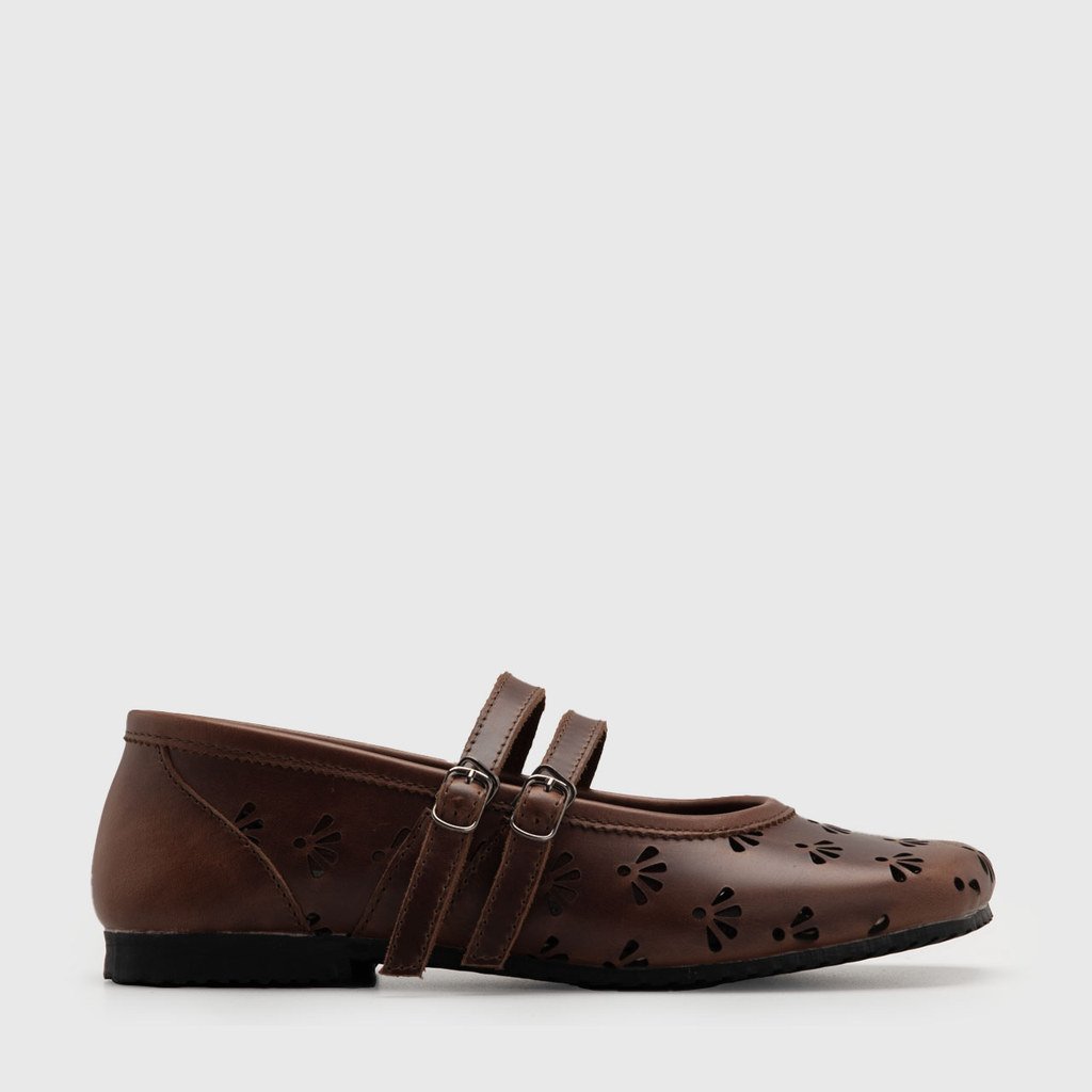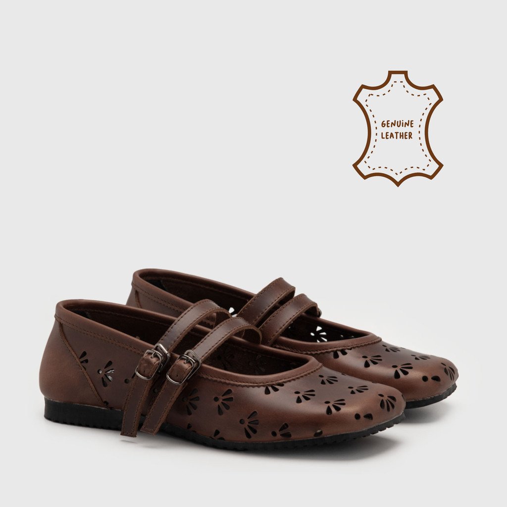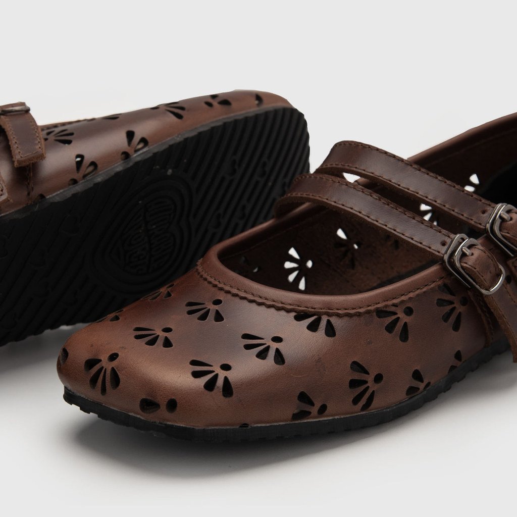Posie Laser Cut Flat Shoes Genuine Leather Brown