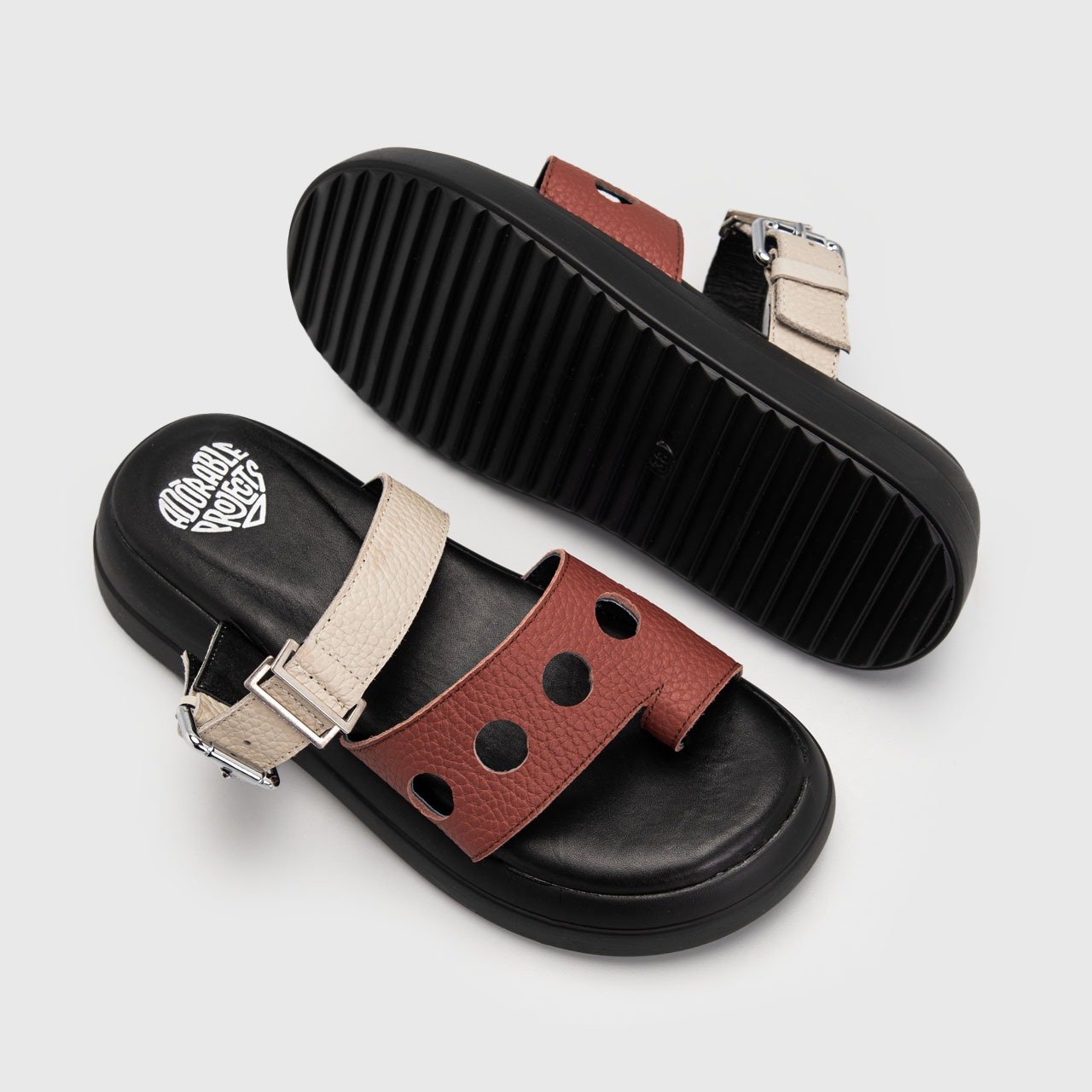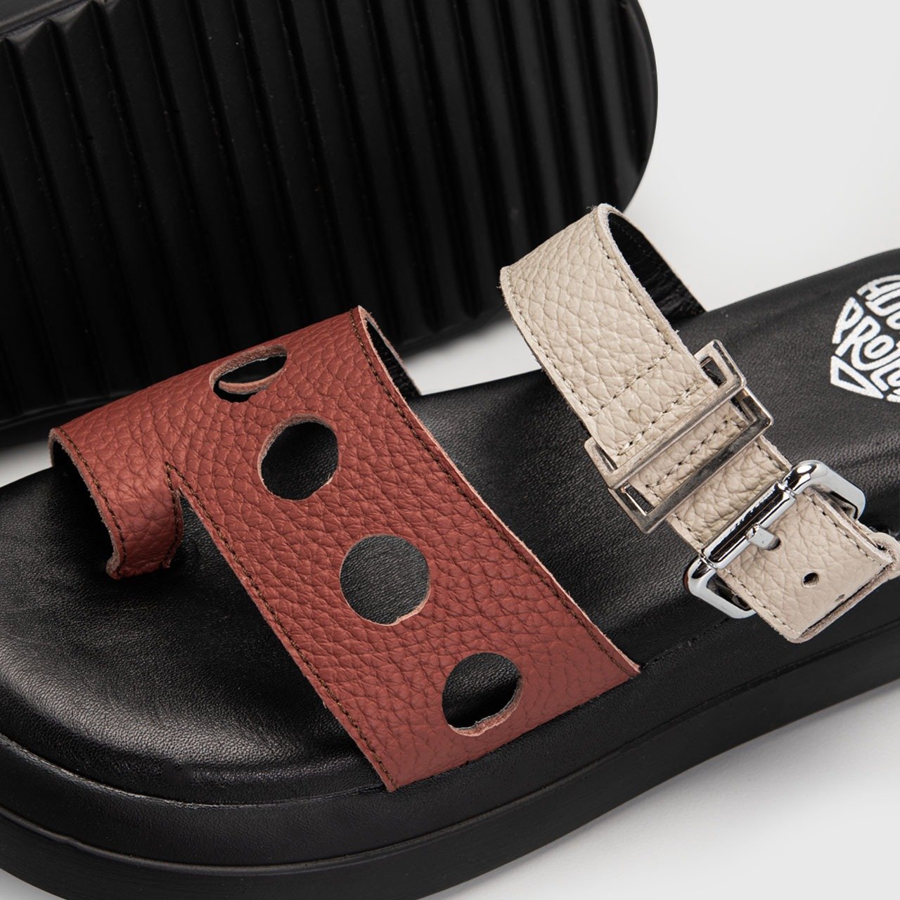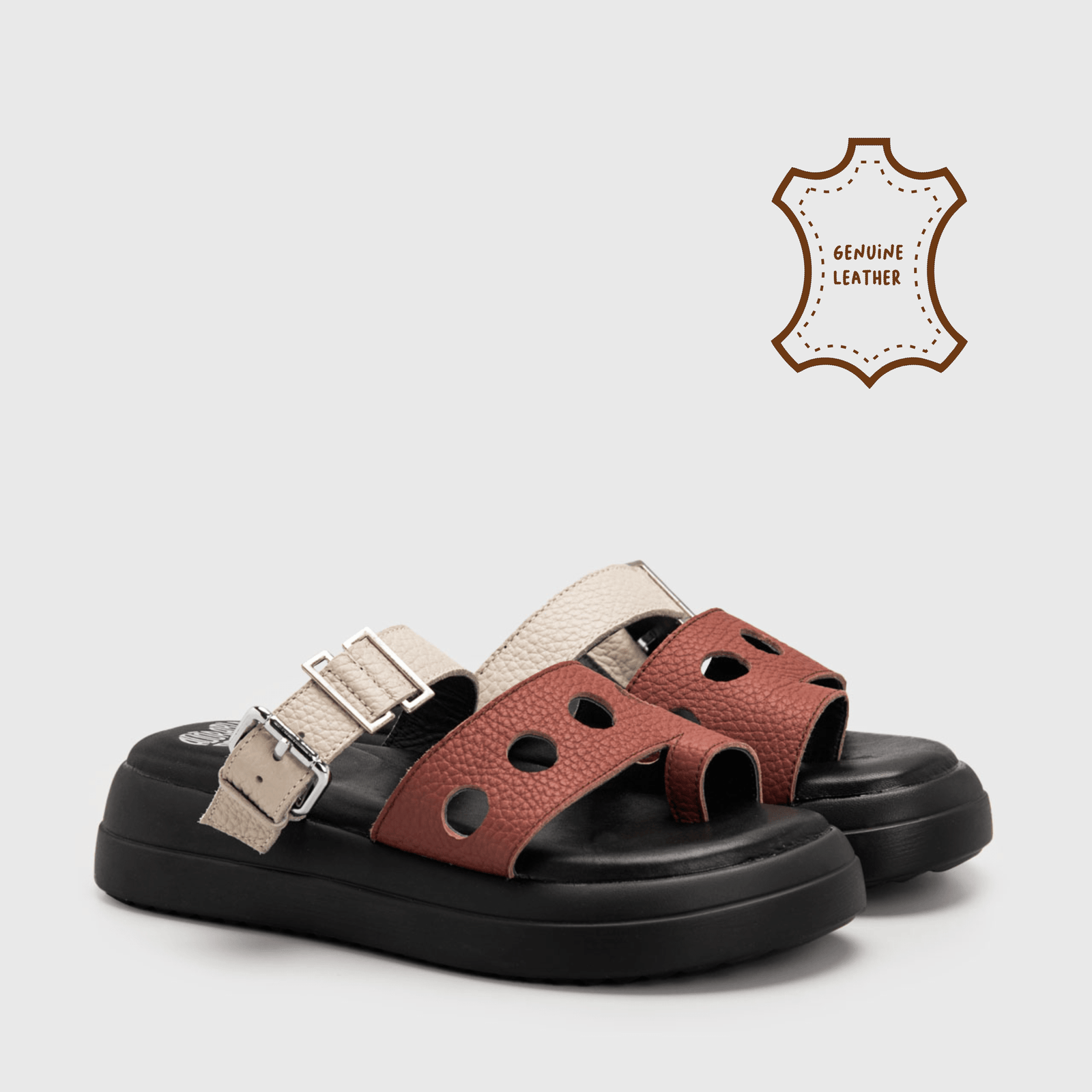 Crafted from premium genuine leather, these sandals bring together durability and understated luxury in a design that feels both relaxed and refined. The textured leather upper adds depth and character, while the dual-tone straps create a distinctive, contemporary look that stands out without trying too hard.