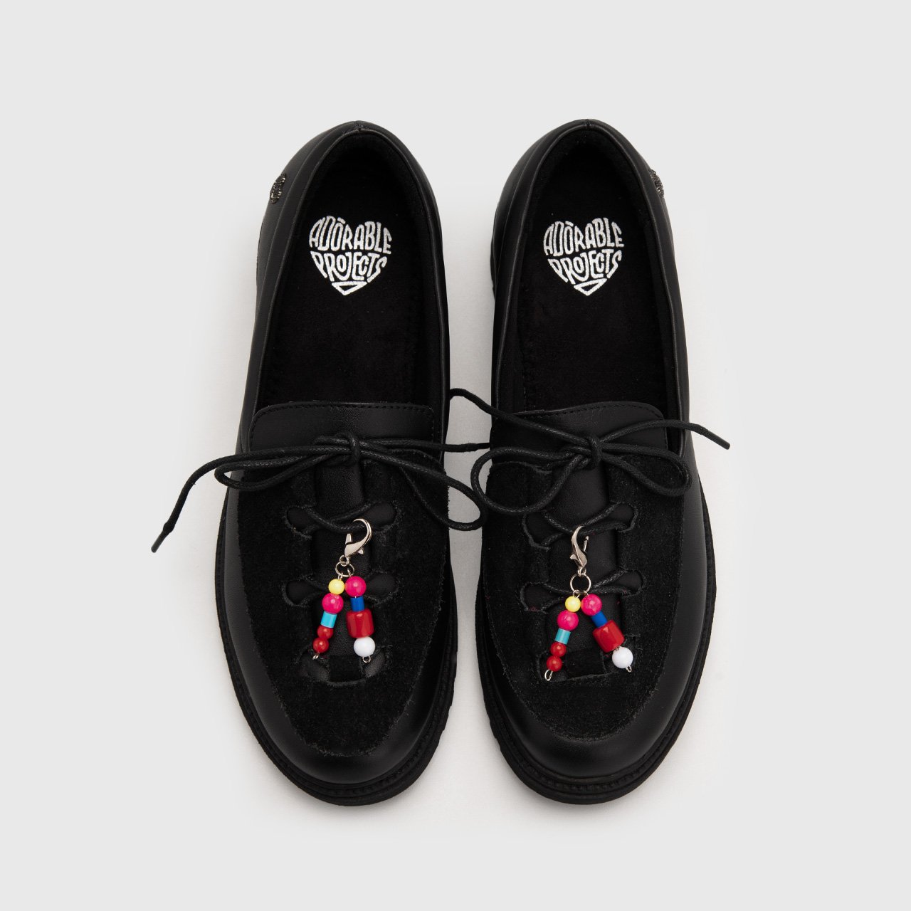 This shoe charm is crafted beads, delicately shaped into a shoe charm, all made by hand.