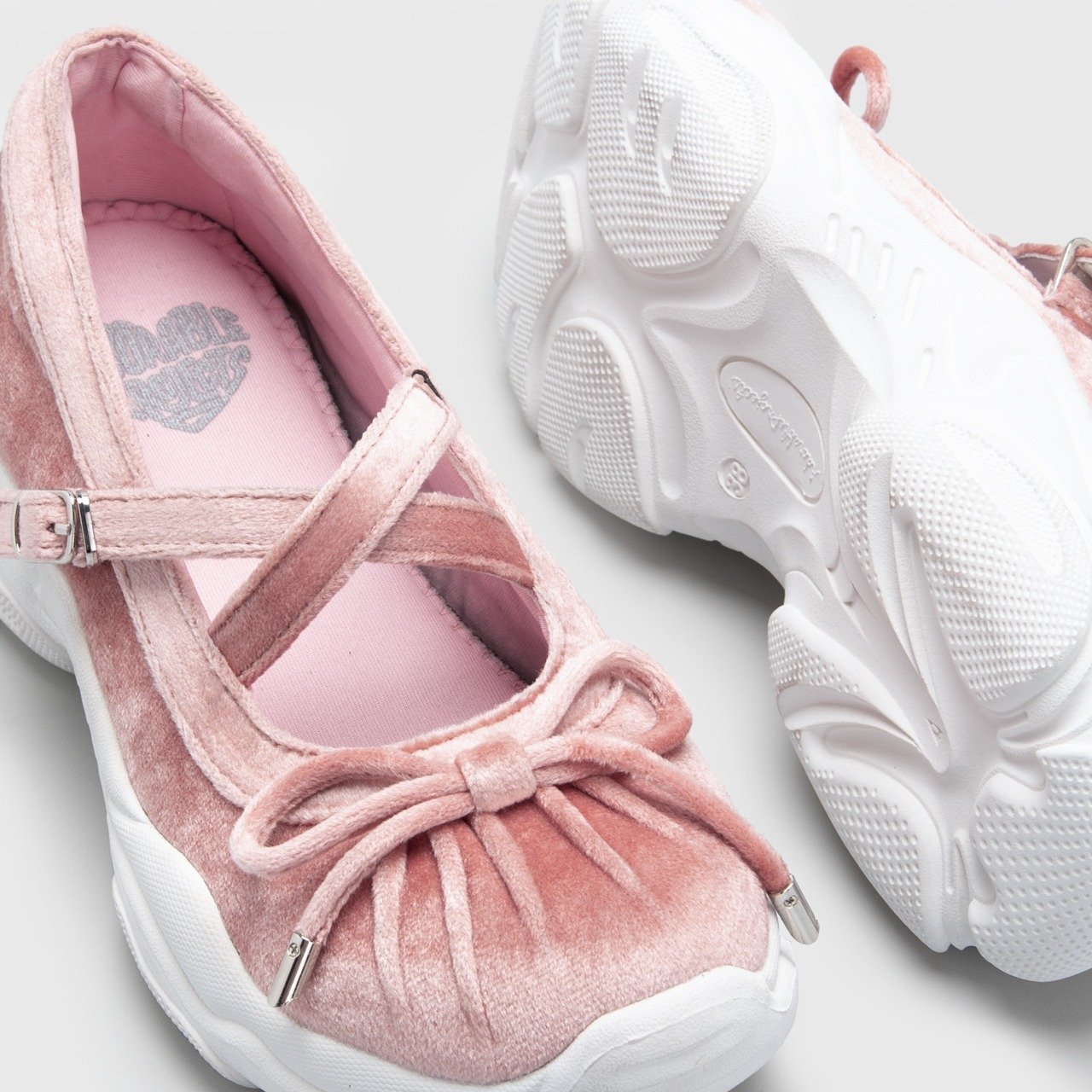 SWIFT is a unique pair of sneakers ballerina crafted from luxurious velvet fabric and adorned with ribbon embellishments. These shoes combine the elegance of ballerina flats with the comfort and casual appeal of sneakers, making them a versatile and stylish addition to your wardrobe.