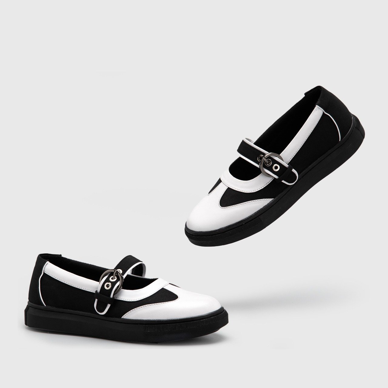 With a bold mix of genuine leather, soft canvas, and a charming metal buckle, this pair brings school-girl nostalgia meets street-style confidence, all in one perfect black-and-white combo.