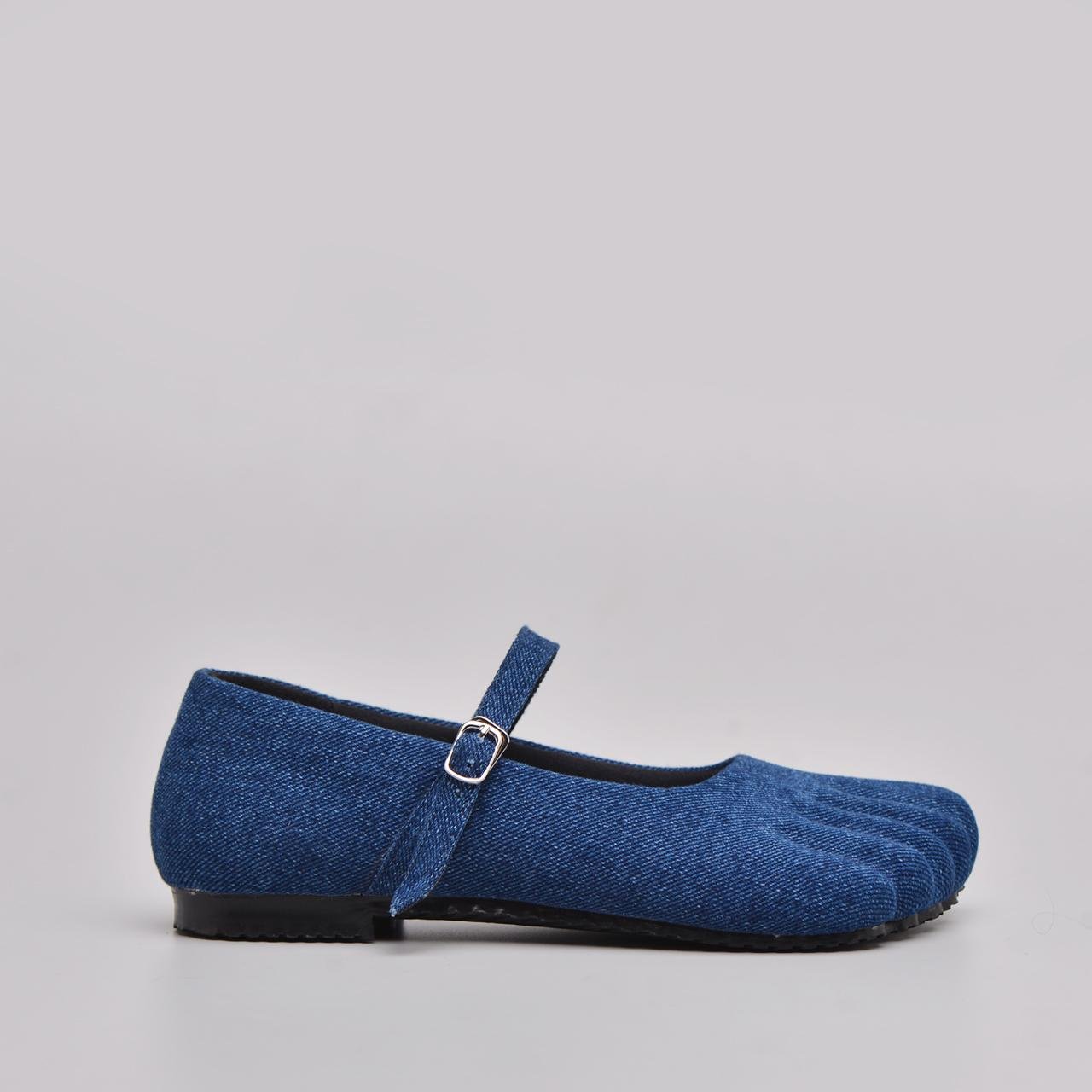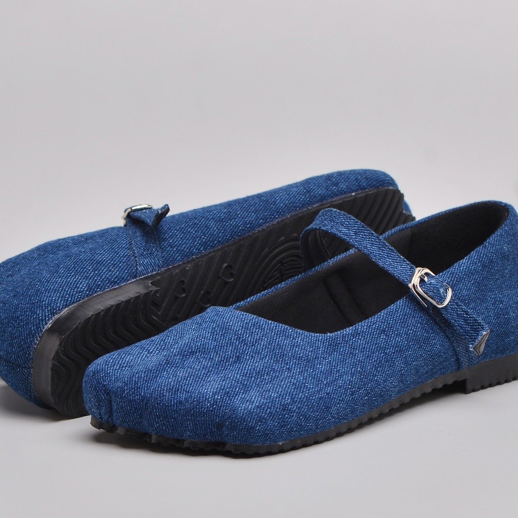 Crafted from denim fabric uppers, the Victoria flats provide a soft yet durable feel that molds comfortably to the foot over time. The rubber outsole ensures traction and flexibility, making them suitable for everyday wear with lasting comfort.